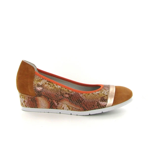 Ballerine à talon compensé femme en cuir et textile à motif serpent, sa doublure interieure est en microfibre anti-transpirante pour une hygiène parfaite du pied.
